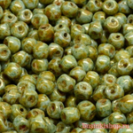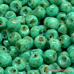 Бусины прессованные стеклянные Размер 4х3мм. Отверстие 0,8мм Цвет OPAQUE BLUE/GREEN SPOTTED 02010/65326 Упаковка 50шт.