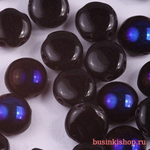 Бусины Preciosa Candy™ Размер 8мм, имеют плоское дно и два отверстия. Отверстия 0,7мм Цвет Black Opaque, Chrom, Half 23980/27401 Упаковка 10шт