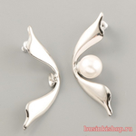 Гвоздики (пусеты) Листик с белыми кристаллами для бусин 5818 Материал - серебро 925 пробы + родий. С серебряными заглушками. Размер гвоздиков 16х11мм Бусины 5818 с отверстием на половину бусины Упаковка 1пара